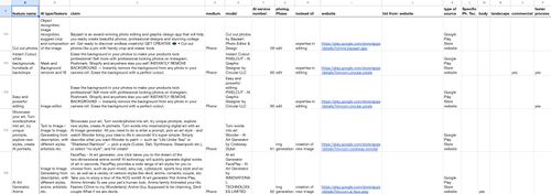 A qualitative and open research approach was chosen in order to obtain an overview of the subject to bring out preponderant themes. Focus was placed on the claims used by AI services and the functions performed by the different features. Feature study mapping and qualitative repeated reading of the claims was produced to bring out the main narratives.